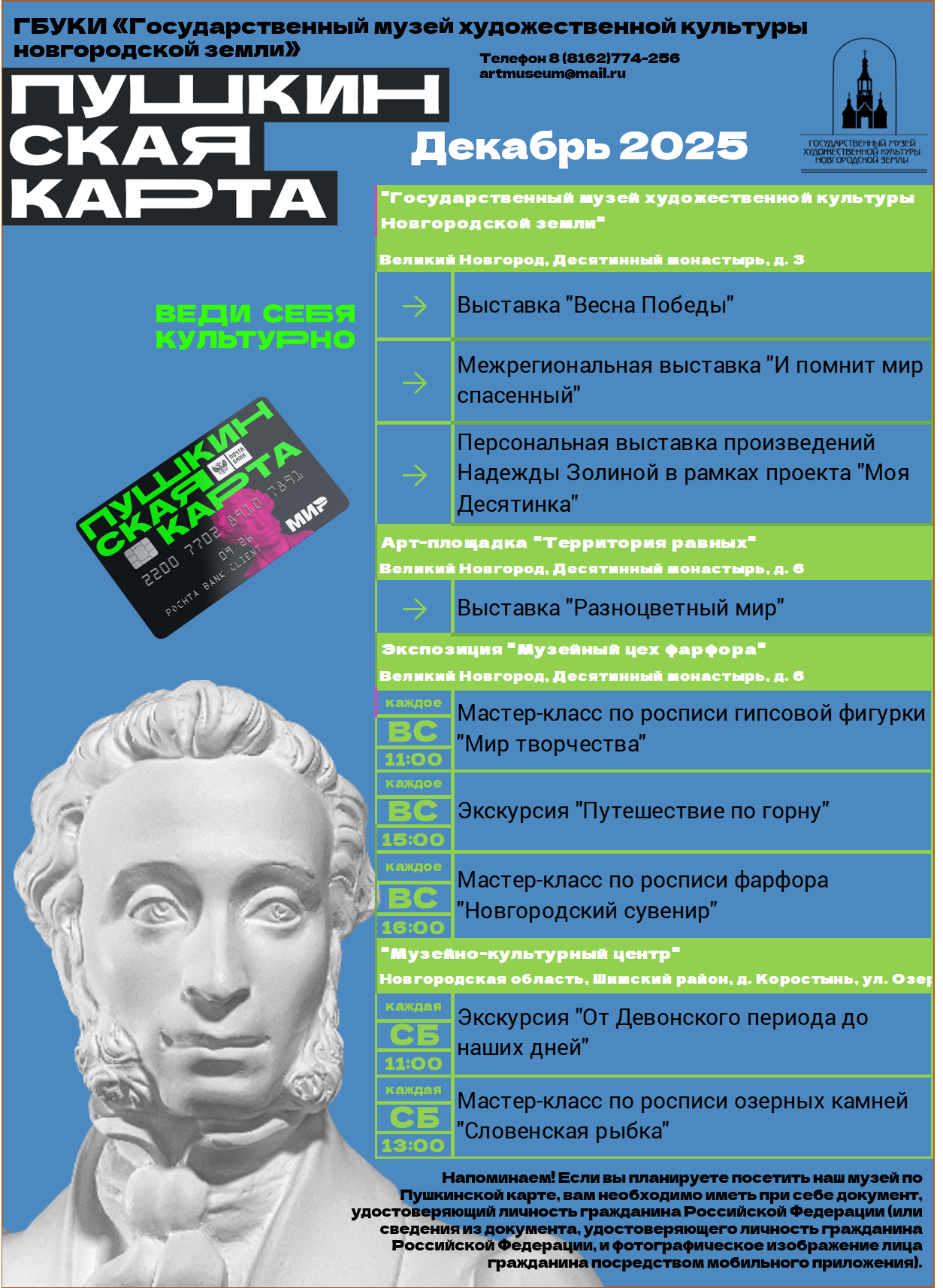 Афиша событий по Пушкинской карте на декабрь